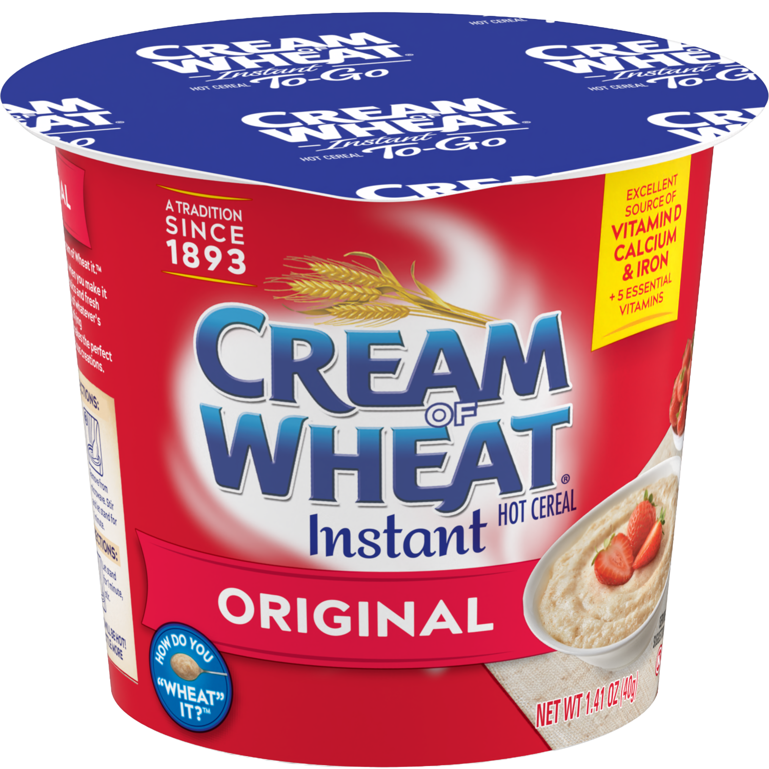 Dive into the same cozy, creamy goodness of Cream of Wheat® Original, now in a convenient to go cup. Packed with 4 grams of protein, zero sugar, and an excellent source of vitamin D, calcium, iron, and 5 essential vitamins.